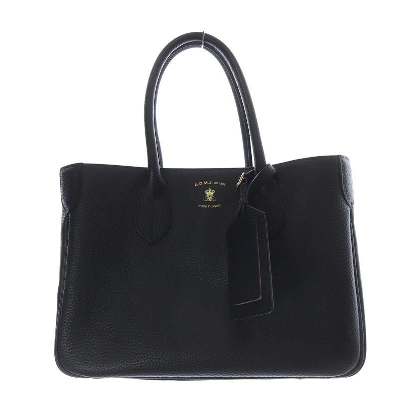 - レディース > バッグ > ADMJ ブラックレザー ハンドバッグ アクセソワール ADMJ アクセソワ Accessoires De Mademoiselle 牛革 かぶせ付き トート
