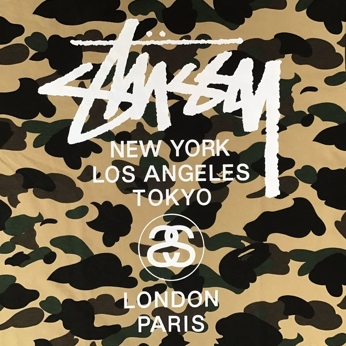 【新品未使用】ステューシー×アベイシングエイプ ワールドツアーT Mサイズ ☆新品☆ BAPE × STUSSY 30th World Tour Tシャツ Lサイズ a bathing