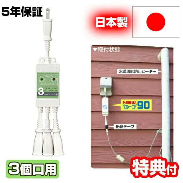 - 生活家電 > その他 > 二個 凍結防止ヒーター用節電器 セーブ90プラススリー 1本口 ESS-P301 セーブ90 プラス3 +3 3本用 ESS-P303 水道管凍結防止ヒーター用節電器