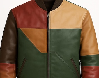 - メンズ > ジャケット・アウター > ジャケット・アウター Handmade Patchwork Leather Bomber Handmade Patchwork Leather Bomber Jacket: Vintage Style Retro
