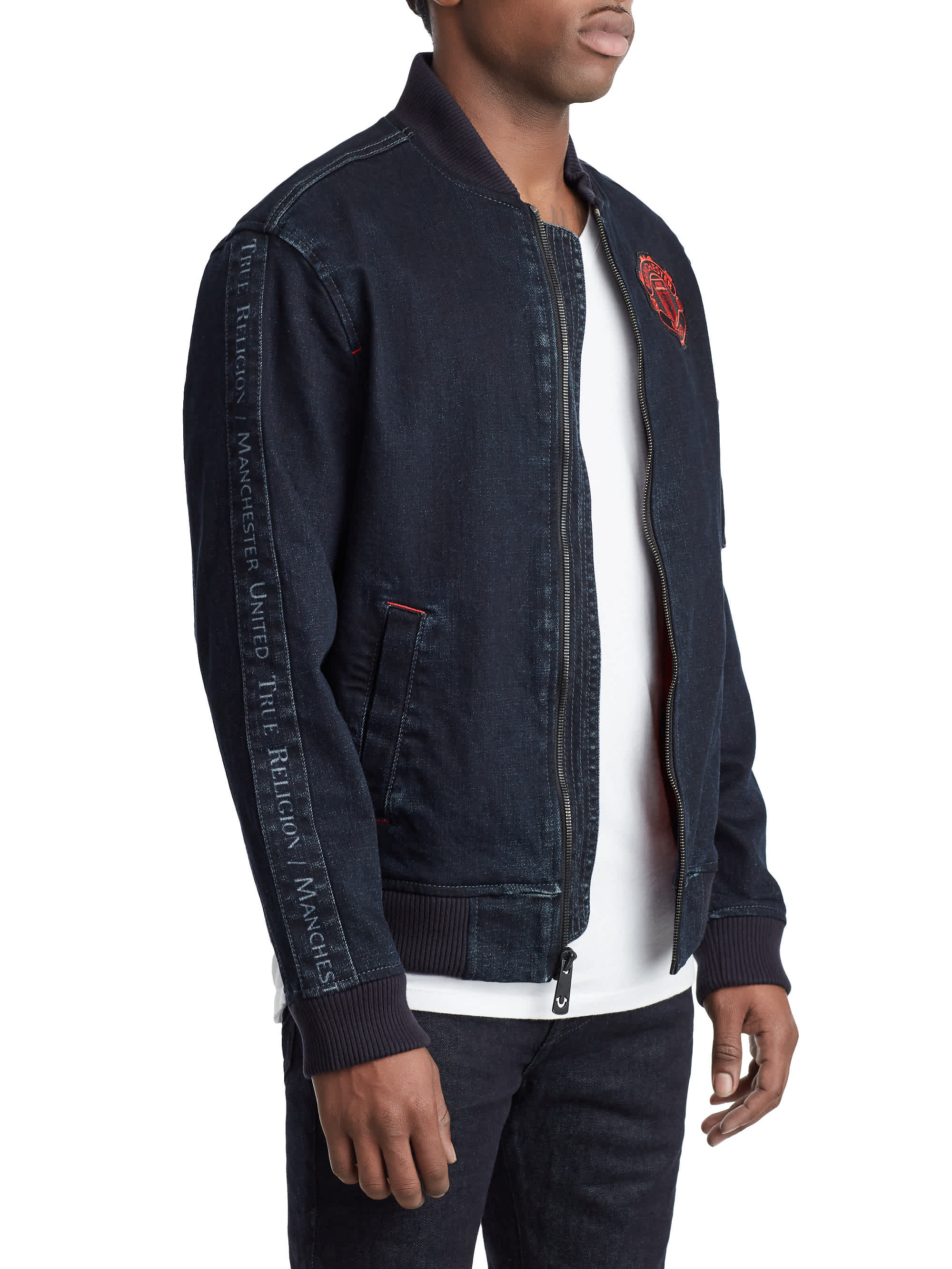 - メンズ > パンツ > マンチェスターユナイテッド×TRUE RELIGON MENS TR X MANCHESTER UNITED DENIM BOMBER JACKET - INDIGO BOMBER