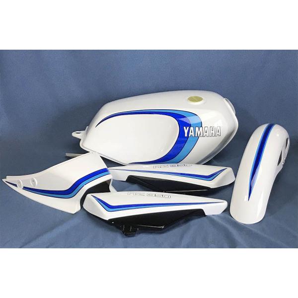 | 商品の特徴 | xessmotor-1_3-y-setp-0002。ヤマハRZ250・350/RD250・350【青系2本ライン】ゴロワーズカラーの。RZ350用 塗装済み外装セット一式 青2本カラー新品 【 ゼス 】※予約受付。RZ350(4U0) 81年式 白ゴロワーズ|SOLD OUT|旧車・絶版バイクならウエマツ。RZ250.350用外装セットです小傷はありますが凹みはなく綺麗な方かと思いますフロントフェンダーは新品ですキャップ付きゴムパーツなども写真の物全て付けますコックはパッキンなど変えて使用してください | ||