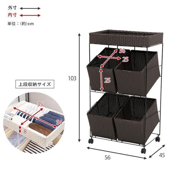 - バス・トイレ収納 > ランドリーラック・洗濯機ラック > ラタン製 3段ランドリーラック キャスター付き HAGiHARA(萩原) ランドリーラック 3段 ランドリーワゴン ランドリー
