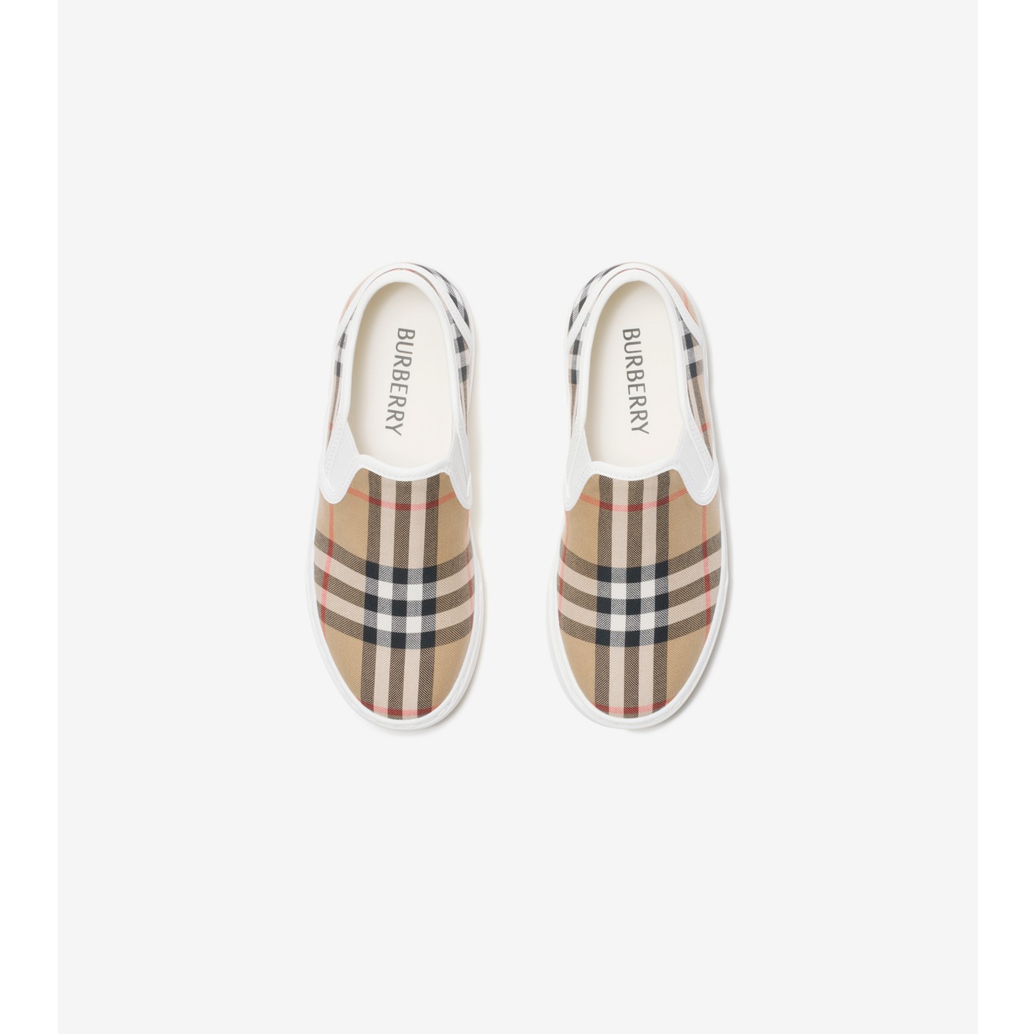 BURBERRY チェック柄スリッポン スニーカー 18cm Check Cotton Slip-on Sneakers in Sand beige - Children | Burberry
