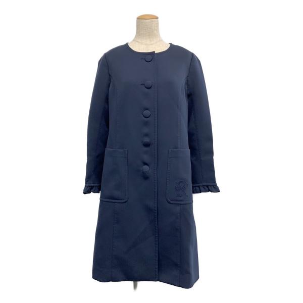 【Reneルネ】 ウール トレンチ ステンカラー ロングコート ネイビー リボン Rene(ルネ) コート ノーカラー スプリングコート 刺繍 36 : ブランド
