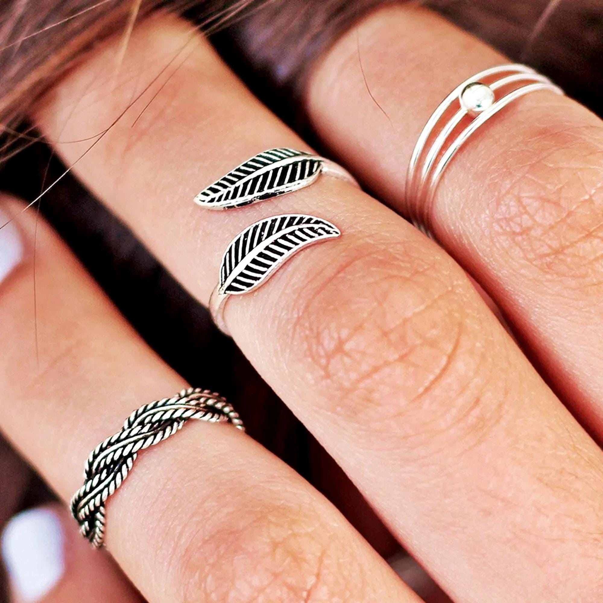 - メンズ > アクセサリー > OX JEWELRY Silver Minimal Pinky Ring 3本 Triple Band Midi Ring, Sterling Silver Pinky Ring, Minimalist Ring