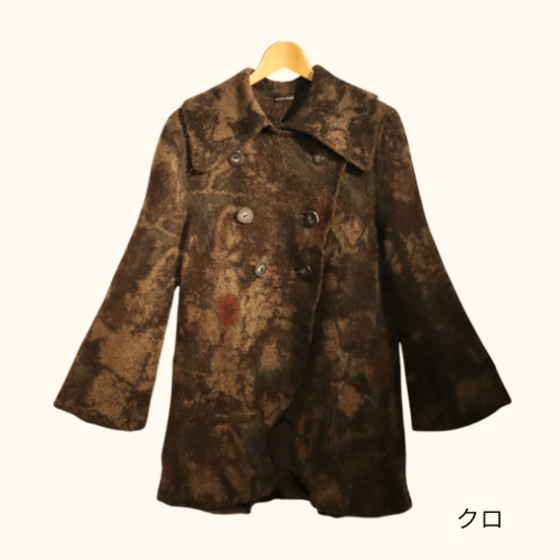 | 商品の特徴 | BUTAPANA☆ジャガードコート | chakana web shop。BUTAPANA butapana ブタパナ ニット ジャガードコート ◾︎ブタパナ。人気のニットブランド『BUTAPANA』💕💕 安心の日本製、ウール100%で。ご覧いただきありがとうございます。ダークブラウンとパープル アイスブルーがかったグレー、スモーキーピンク、そしてブラックの絞め色も入った圧縮ウール。優しい雰囲気の色合いで顔映りがよいです。写真13-14が自然光での色味です。 軽くて暖かいBUTABANAのハーフコートダブルボタン、フレアスリーブと大きな襟が特徴。マフラーと合わせればかなり寒い時も心強いアイテム。オリジナルの編み地と色みのBUTAPANA、ウールニットのジャガードコート。倍以上の編み地を熱で圧縮して作られコートは二回に分けて圧縮されているので風を通しません。そのため、軽くて暖かく着心地抜群です着た時のフレアーが綺麗で後ろはお尻が隠れる長さがあります。バンツ、スカート、ワンピースなどの上に羽織りそれぞれのニュアンスを楽しめます。家で洗濯OK。ウール100% 日本製 着丈:約80cm胸回り:約108cm袖丈:約57cm(圧縮された状態なので 無理なく体に合わせて着ることができます)色、素材とも大好きなのですが痩せてしまい私にはやや大きいので(上着は普段7-9号着用)、11-13号位のかたならフィット感を楽しんでいただけそうです。-- デザイン: ダブルボタンのピーコート- 素材:圧縮 ウール- 袖のスタイル: フレアスリーブ- 前面左右にポケットあり- 襟のデザイン: 大きな襟- サイズ: ML~Lサイズ相当ご参考売価はセレクトショップで税込み46200円です。BUTAPANA ニット ジャガードコート CATEGORY BUTAPANA ブタパナ。【極美品✨】Sybilla シビラ デザインスリーブウールコート ピンク。新品 マッキントッシュ完売モデル ハンビー スタッズ HUMBIE ブラック 4。ADAM ET ROPÉ ノーカラーコート ウールモヘア ロングコート ベージュ。マックスマーラ◆カシミヤ混 白タグ ミドルコート ベージュ キモノスリーブ。大きいサイズ46♡23区 蛯原友里さん着用 ウールリバーショートコート ブラウン。完売商品★新品未使用タグ付き ウールリバーミドルAラインコート。genten ノーカラーコート ドルマン ウール サイズ38 定価8万円 黒。レディース ボーダーコート。極美品 シクラス CYCLAS メルトンビーバーウールコート オーバーサイズ。イエナ ポンチョ風 アルパカ シャギーコート Aライン ショートコート。girlish ガーリッシュ 今季 St.cecilia リバーウールコート | ||