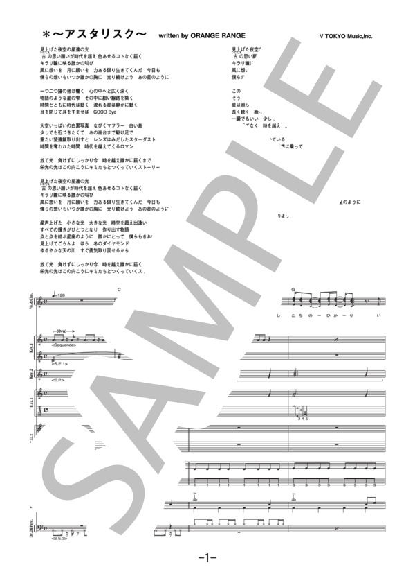 NITROPLUS MUSIC SCORES LIBRARY バンドスコア 楽譜 楽譜】*~アスタリスク~ / ORANGE RANGE バンドスコア / ORANGE RANGE