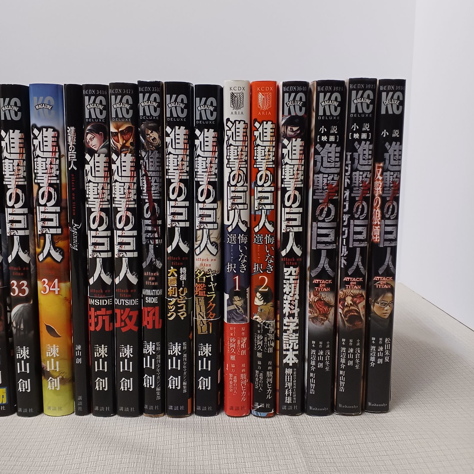 | 商品の特徴 | ほぼ初版 進撃の巨人 全巻セット 34巻+関連本5冊 特装版。激レア】進撃の巨人 初版未開封セット dショッピング |[新品]進撃の。全巻初版】進撃の巨人 全34巻 全巻初版・未開封23冊】進撃の巨人 全。進撃の巨人 進撃の巨人全巻1〜34巻 1~34巻 全巻+。進撃の巨人コミック 全巻セットのうち初版なのは↓↓4,5,6,7,8,9,11,12,13,14,15,16,17,18,19,20,21,22,23,24,26,27,28,29,30,31,32,33,34※初版じゃないものは1,2,3,10,25,INSIDE抗の6冊のみ関連本:・キャラクター名鑑(初版)・悔いなき選択1(初版)・悔いなき選択2(特装版ブックカバー付き・初版)・OUTSIDE攻(初版)・INSIDE抗 19巻にシミあり(画像9と11)天部分に日焼けあります | ||