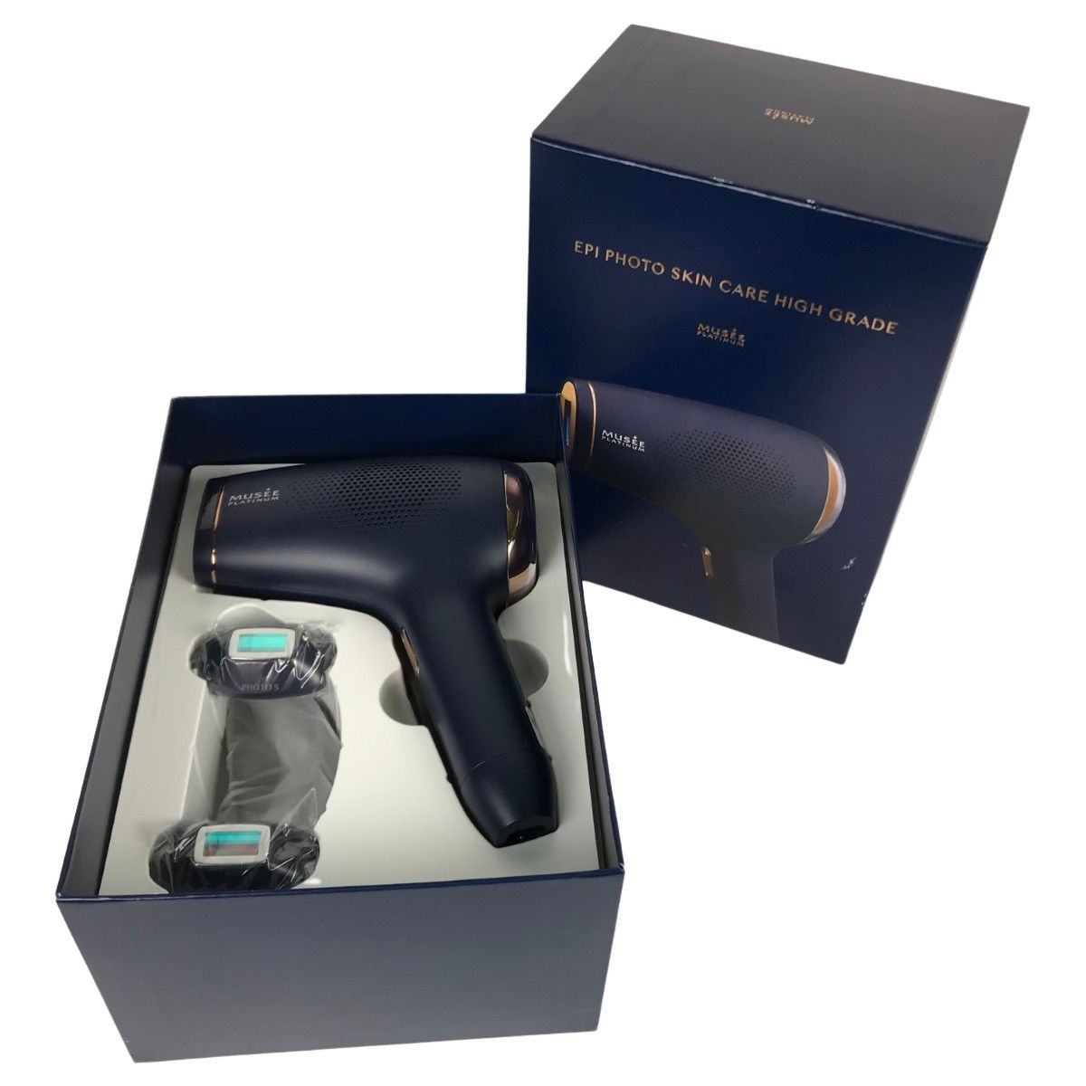 | 商品の特徴 | ミュゼ プラチナム エピフォトスキンケア ハイグレード ミュゼ。2026年最新】エピフォトスキンケアプロ ハイグレードの人気アイテム。ミュゼ プラチナム エピフォトスキンケア ハイグレード ミュゼ。種類···脱毛器全身のムダ毛ケア、美肌ケア。以下サイトからの抜粋■商品概要商品名:エピフォトスキンケア ハイグレード価 格:130,000円(税込価格143,000円)付属品:Face用アタッチメント、Photo S用アタッチメント、専用ゴーグル、電源アダプター、電源コード【2種類のケアモード搭載】◆ムダ毛ケアモード・従来品と比べて約1.5倍のハイパワーでムダ毛にアプローチ・照射回数はたっぷり50万発!シェアしてもたっぷり使用できる・5段階のレベル設定が可能で、肌状態に合わせたケアができる・冷却機能付きで痛みの少ないムダ毛ケアが可能・背中にも当てやすいようL字型を採用◆美肌ケアモード・自宅で気軽にサロン品質の美肌ケアができる・定期的なケアで簡単にうるツヤ肌を目指せる。家庭用光美容器 エピフォトスキンケア ハイグレード ミュゼプラチナム | ||