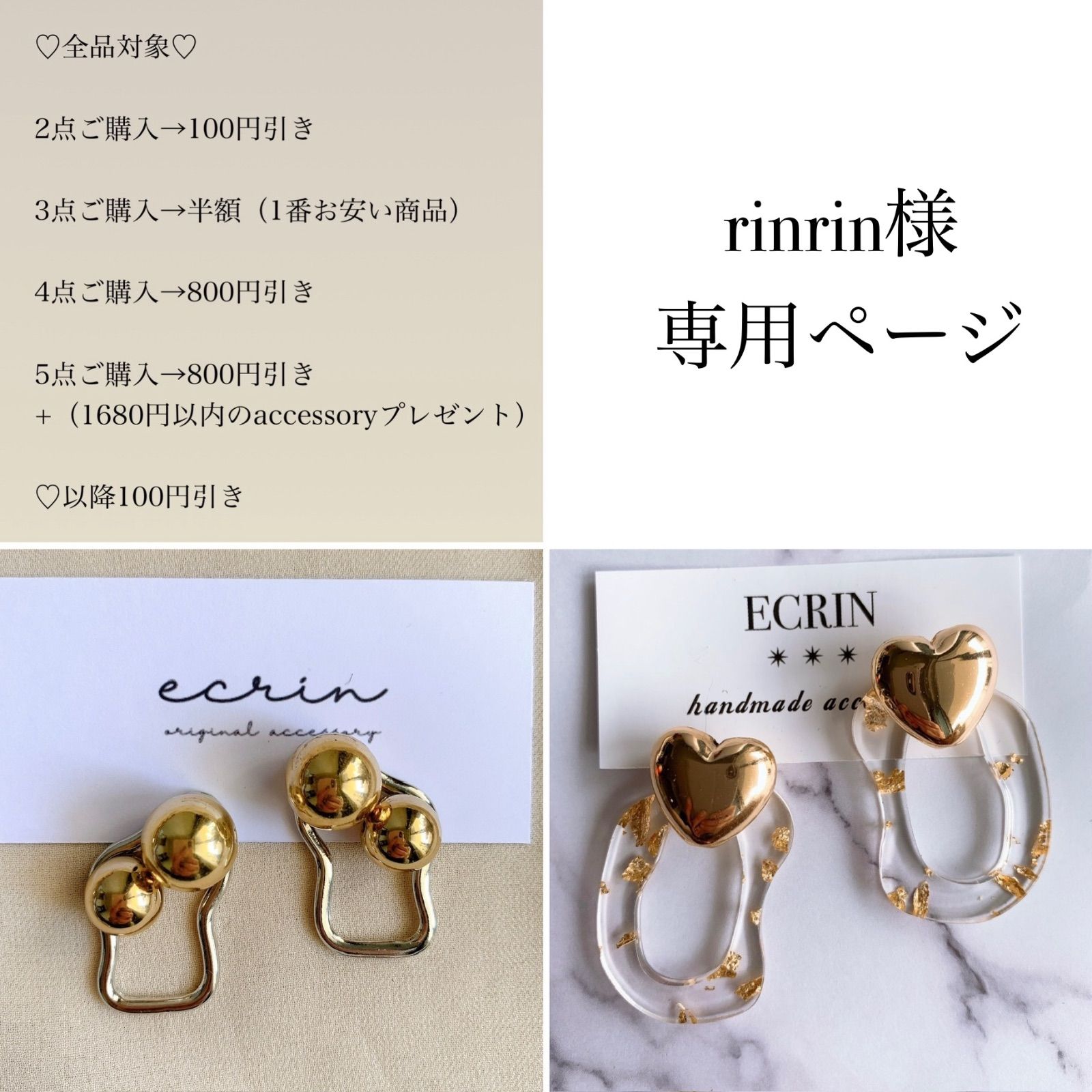| 商品の特徴 | 専用ページ おまとめ 3点 イヤリング ねこまる様 リクエスト 3点 お。ねこまる様 リクエスト 3点 おまとめ商品 ハンドメイドピアス。ねこまる様 リクエスト 3点 おまとめ商品 ハンドメイドピアス。ねこまる様。この度はリクエスト頂きありがとうございます(❀ᴗ͈ˬᴗ͈)\"専用ページ作成致しましたのでご変更などございましたらお気軽にお申し付けください❤️asymmetry薔薇ピアス(グリーン)➜3580円 (金具変更無し)❤️asymmetry薔薇ピアス(ホワイト)➜3580円 ①ネジバネ式イヤリング➜150円 (ジルコニア無し)❤️薔薇ベリーピンクピアス➜3980円 ①ネジバネ式イヤリング➜150円 (張り付け金具) ❤️3点合計金額➜11440円 ෆ˚*フォロワー様割り➜100円 ෆ˚*3点おまとめ割り➜100円 ❤️お値引き後合計金額➜11240円ෆ˚*お手数をおかけ致しますがプロフィールご必読お願い致します。ෆ˚*お品物と金額をご確認頂きお間違いなければお手続きの方お願い致します(⁎ᴗ͈ˬᴗ͈⁎)。ねこまる様 リクエスト 3点 おまとめ商品 ハンドメイドピアス。【Inoya Makiko】ガラス ピアス (キャッチ無) | ||