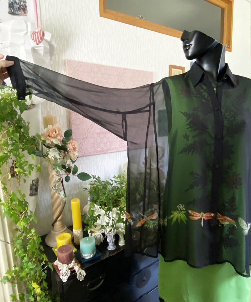 - レディース > トップス > TOKUKO 1er VOL メッシュチュニックブラウス 黒 花柄 日本製 鳥や花、虫たちと葉っぱの黒ブラウス 〜TOKUKO 1er VOL | Salon de EL