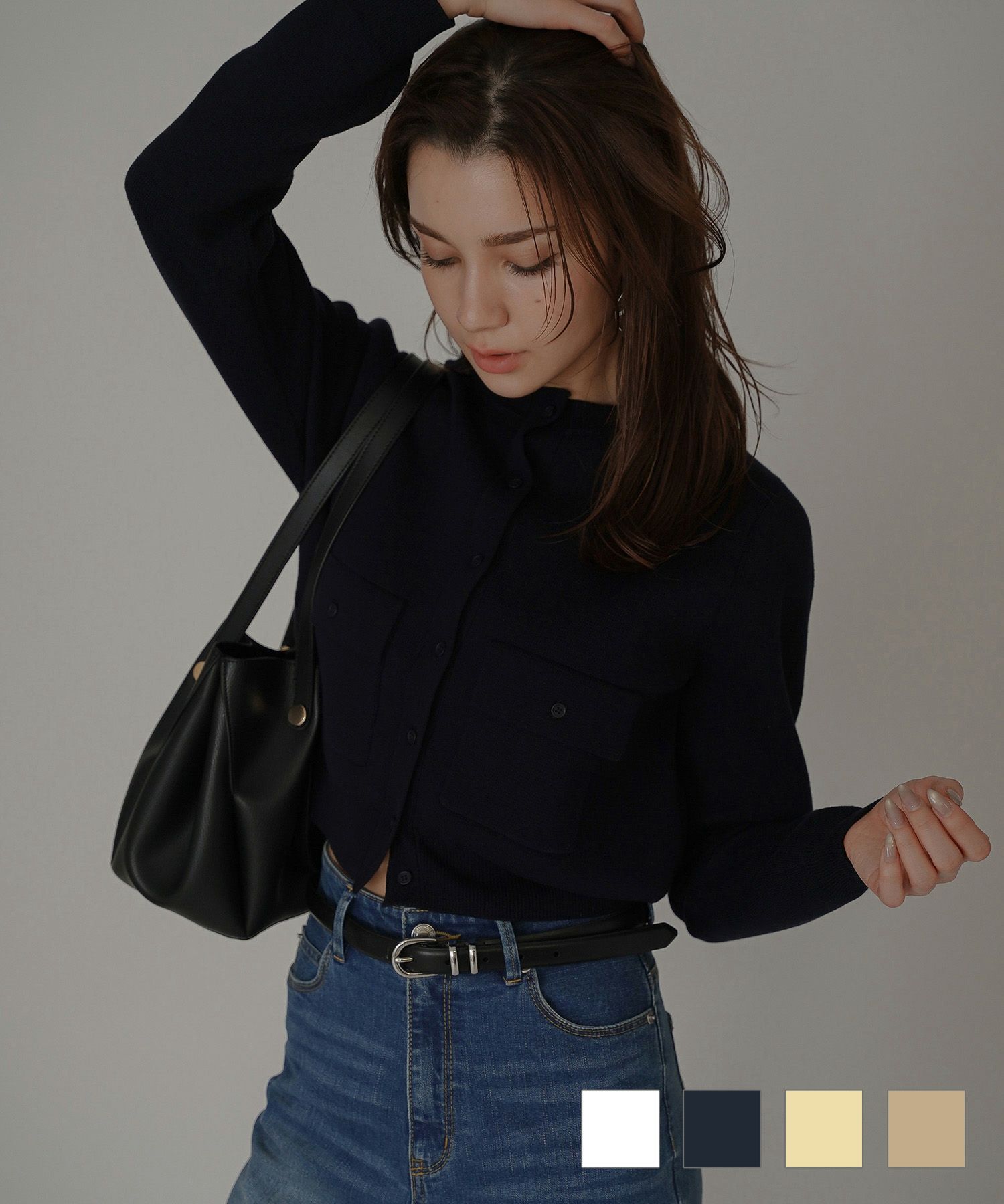 - レディース > トップス > KINO THE KEI フラップ ポケット ニット カーディガン ネイビー フラップポケット コットンニット カーディガン KINO THE KEI 全4色