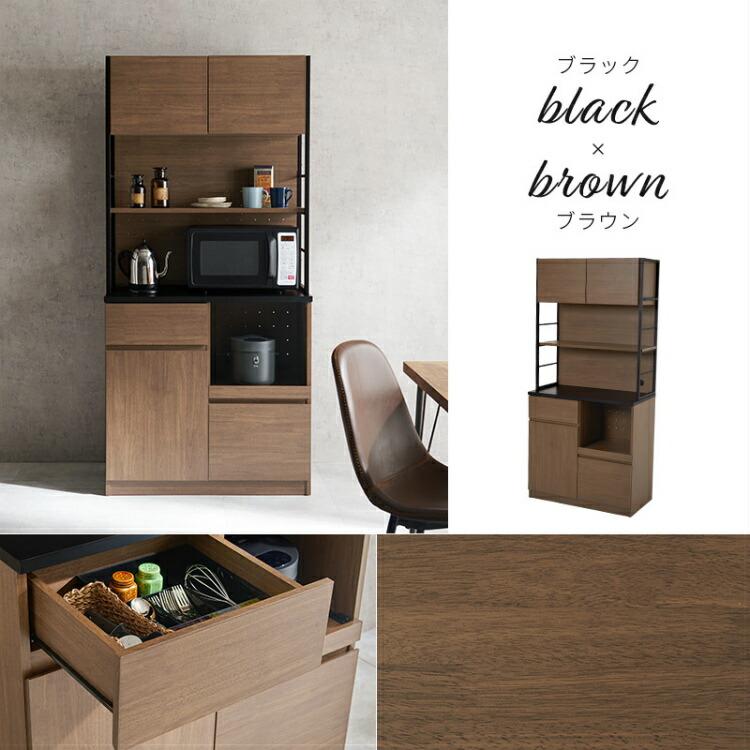 【幅90㎝】レンジ台 食器棚 おしゃれ レンジラック【ブラック×ブラウン】 食器棚 レンジ台 約幅90cm キッチンボード 収納 キッチン収納 キッチン