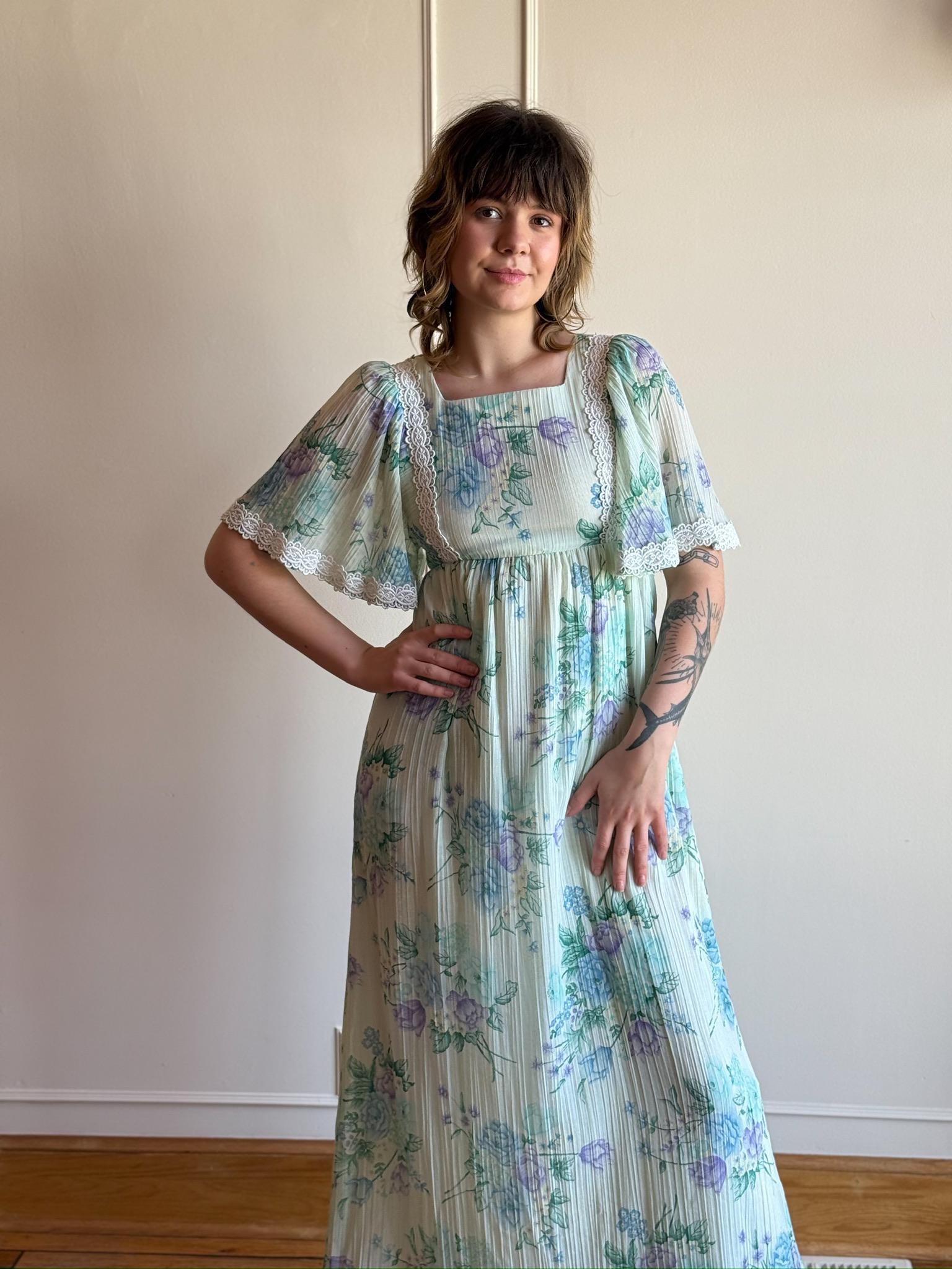 | メーカー | ⭐︎ヴィンテージアイボリーマキシドレス⭐︎ 70年代風フローラルコットンガーゼマキシドレス |