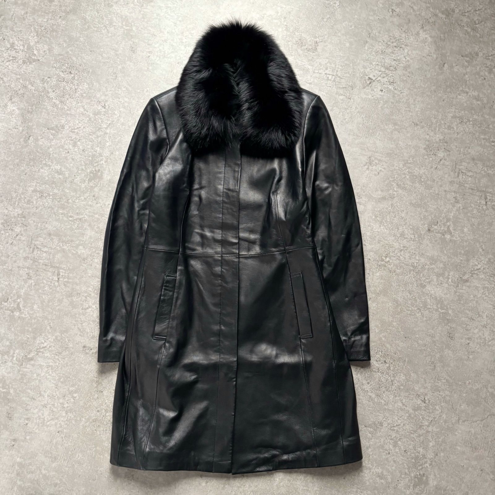- レディース > ジャケット・アウター > 265 新品未使用保管品タグ付 三越ラムレザーコート パルティナ 羊革 フレアー 美品 LaTorre ラトーレ SAGA FOXファー付ロングレザーコート 圧倒的