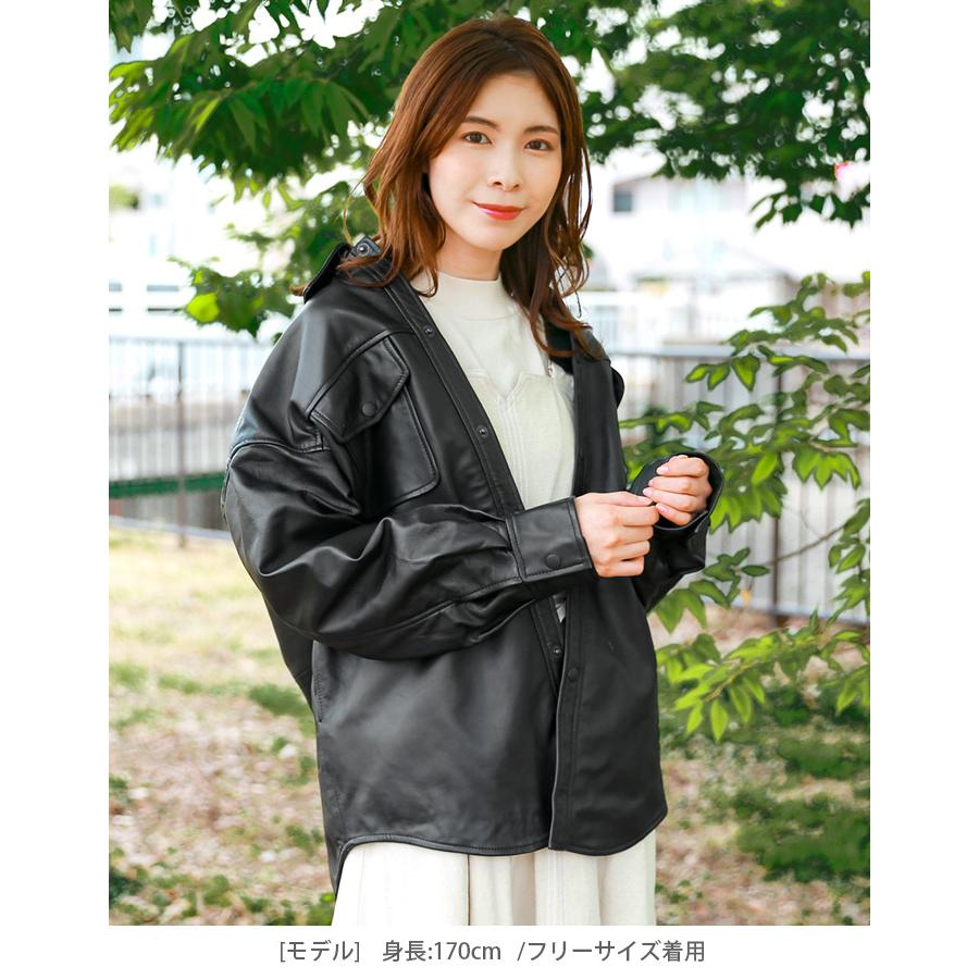 - レディース > ジャケット・アウター > アイシービー レザージャケット フリル ラムレザー 黒 羊革 本革 リアルレザー レザーシャツ 革シャツ レザージャケット 革ジャン レディース 秋冬