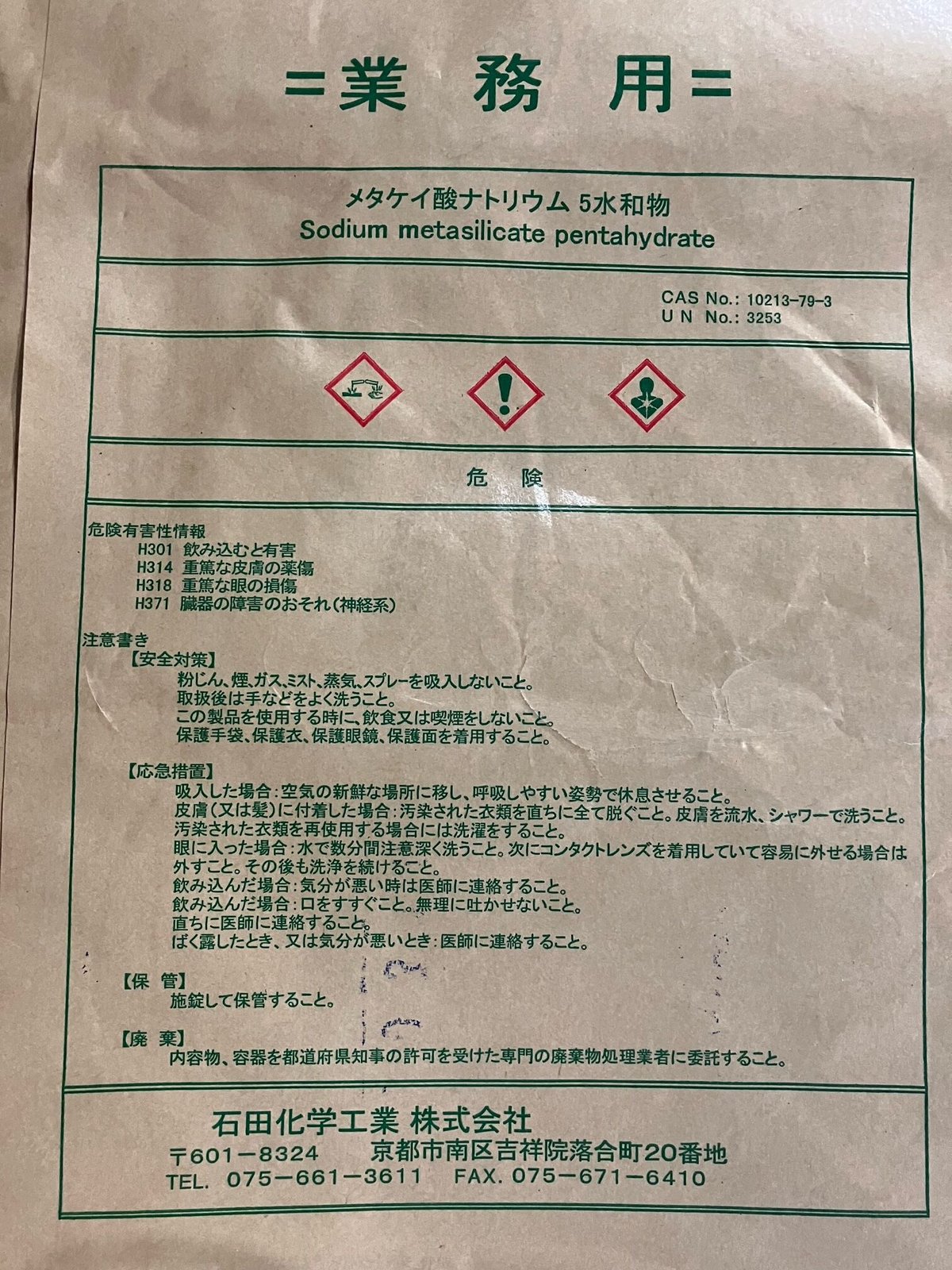 | メーカー | メタソーブ メタ珪酸ソーダ5水塩 |