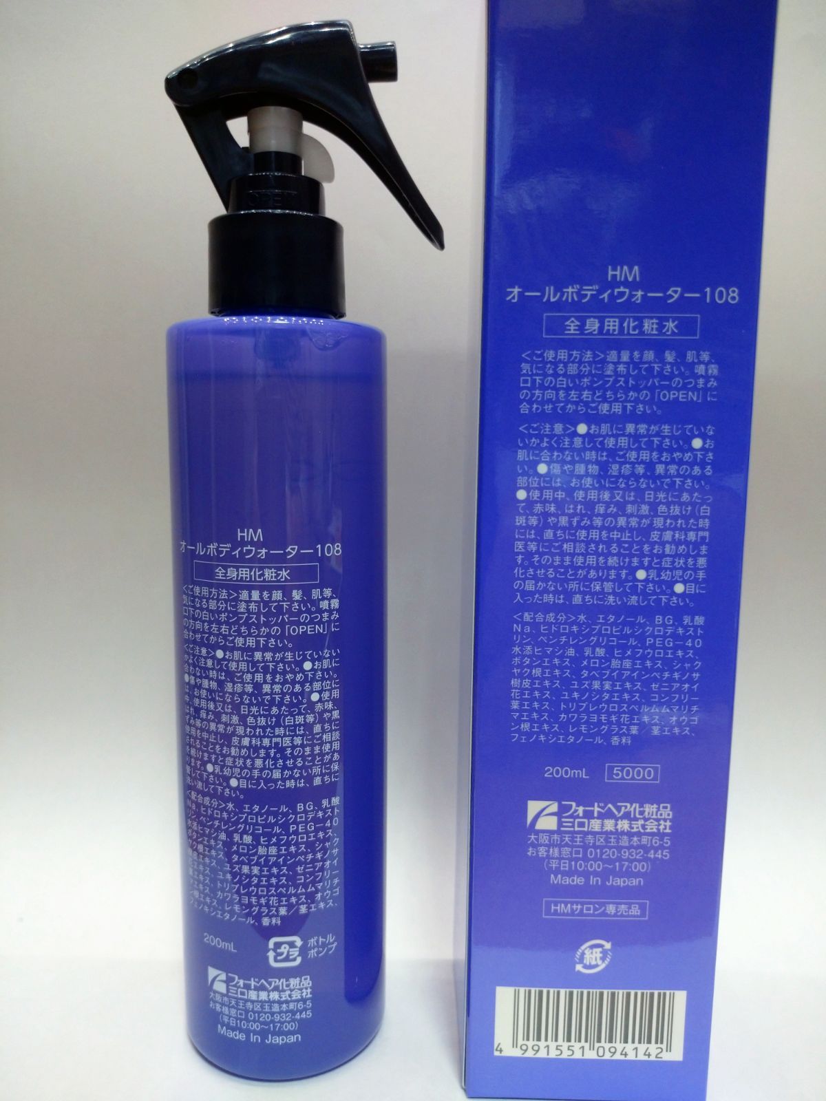 | 商品の特徴 | フォードHM オールボディウォーター108 6本入りセット×3箱。フォード HM オールボディウォーター108 6本入りセット×4箱 ミアン。108シリーズ | ミアンビューティー(三口産業株式会社)。全身用化粧水200ml×6本セットの4箱分です。使用方法・成分等の詳細は写真をご覧下さい。セットの外箱にストレッチフィルムで巻いての配送となります。。フォードHM オールボディウォーター108 6本入りセット×3箱。AQUA MOIX プレミアムフェイスエッセンス 50ml。みんみ | ||