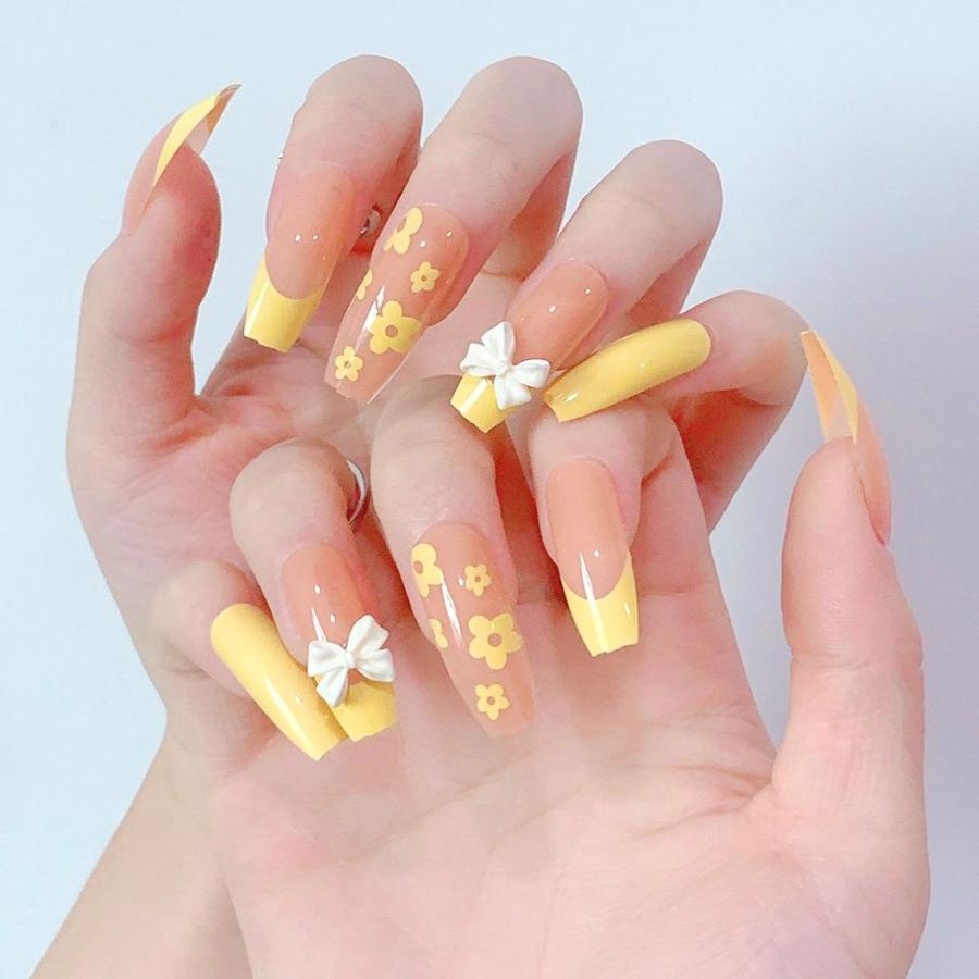 - ネイルケア > ネイルチップ・付け爪 > ネイルチップ 成人式 和柄 振袖 黄色 花 フラワー ネイルチップオーダー ネイルチップ 黄色 花柄 ロング 韓国 成人式 和柄 振袖 和装 和 和風