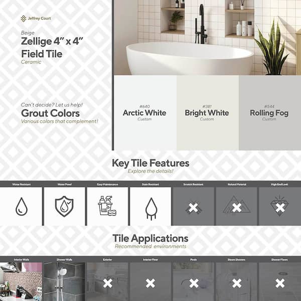 サブ様 ジェル2&クリーム4 Jeffrey Court Beige Zellige 4 in. x 4 in. Subway Matte Ceramic