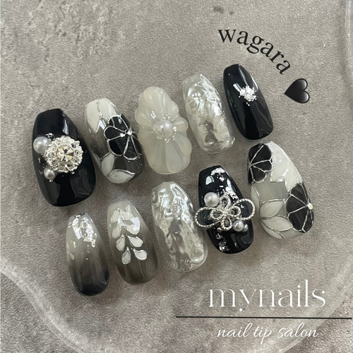 - ネイルケア > ネイルチップ・付け爪 > ネイルチップ ブラック ニュアンス 黒 シルバー フルオーダーネイル オーダー ネイルチップ ブラック ニュアンス 黒 シルバー フルオーダーネイル