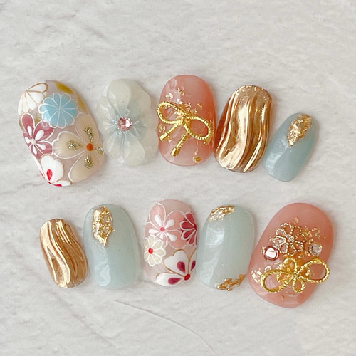 - ネイルケア > ネイルチップ・付け爪 > ネイルチップ 成人式 ニュアンス 振袖 和柄 花 フラワー オーダーネイル ネイルチップ/成人式/結婚式/卒業式/和柄/振袖/花柄/ぷっくりフラワー