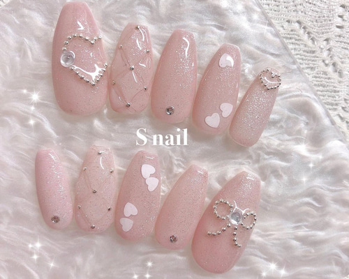 - ネイルケア > ネイルチップ・付け爪 > ネイルチップ オーダー マグネット フレンチガーリー キルティング 韓国 リボン ネイルチップ ピンク マグネットネイル 韓国 フレンチガーリー ハート