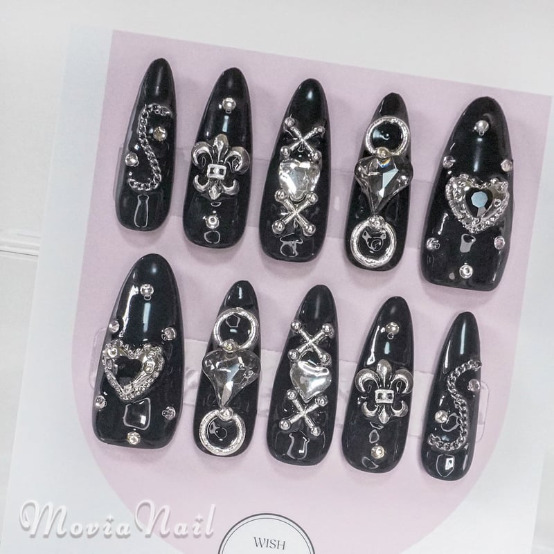 - ネイルケア > ネイルチップ・付け爪 > オーダーネイル 量産 地雷 ゴシック バンギャ ゴテゴテ 派手 黒青ネイルチップ オーダーネイル 量産 地雷 ゴシック バンギャ ゴテゴテ 派手 黒青