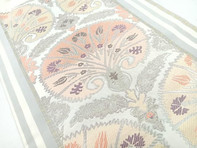 - レディース > 着物・浴衣 > 九寸名古屋帯 白色 正絹 西陣織 金糸 唐織 花 貝 綺麗 新古品 yzk648 九寸名古屋帯 白色 正絹 西陣織 金糸 唐織 花 貝 綺麗 新古品 yzk648