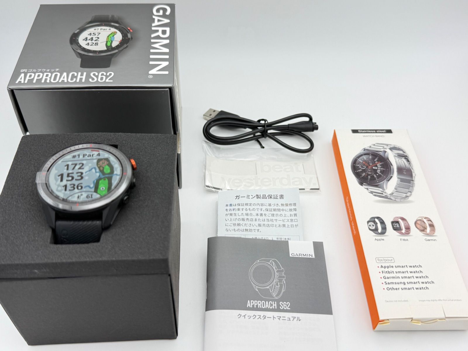 | 商品の特徴 | GARMIN APPROACH S62 GPSゴルフナビ 元箱付き GARMIN APPROACH S62 GPS。GARMIN(ガーミン) Approach S62|010-02200-20|[通販]ケーズデンキ。Approach S62 | スマートウォッチ | Garmin 日本。ブランド:GARMIN ガーミンアイテム:GPSゴルフナビモデル・品番:Approach S62表記サイズ:実寸:素材:写真をご参照ください。2376335014_003.jpg。状態:B 動作確認済み、薄汚れが見受けられます付属品:箱、ガーミン製品保証書、クイックスタートマニュアル、保護フィルム、S6受電端子キャップ蓋、防塵コネクタカバーシリコンガーミン、ガーミン(Garmin)充電用変換L型アダプターType-C2個、、ガーミンウオッチナイロンベルト※充電ケーブルは付いておりません、TypeCケーブルで対応出来ます。TaylorMade TP5 ゴルフボール 2箱セット。表記サイズはあくまでも新品時のメーカー表記サイズとなっており、中古品の場合、同じサイズでも実際のサイズ感に違いがございます。R2G MATE PRO ゴルフ用距離計 ケース2つ付き 3点距離計測。その為、商品の実寸サイズ(平置き)を記載させていただいておりますので、そちらを参考にお手元の服と必ず比べて頂きますようお願い致します。GARMIN(ガーミン) ゴルフナビ Approach S62 本体と付属品。[状態評価ランク]N 新品同様の商品S 未使用A 未使用に近いA- 目立った傷や汚れなしB やや傷や汚れありB- 傷や汚れありC 使用感または目立つ傷や汚れがある商品D ジャンク品[商品について]商品は、全て中古品となっております。【値下げ】Shot Navi Evolve SE ゴルフGPSウォッチ。ご注文頂く際はその点をご理解頂いた上でのお取引とさせて頂きます。ゴルフスイングトレーナー。商品ページには可能な限り詳細な状態を記載出来るよう努めておりますが、中古品をお取り扱いしている関係上記載しきれない微細なダメージがある場合がございますので、何卒ご了承ください。【新品未開封】ボイスキャディ T11 PRO GPSナビ。商品等、価格相談もお受けします。ブリヂストンTOUR B JGR ゴルフボール 25年ホワイト2ダース(24個)。宜しくお願い申し上げます。スワンズ ゴルフサングラス pathway002 ウルトラレンズ。 | ||