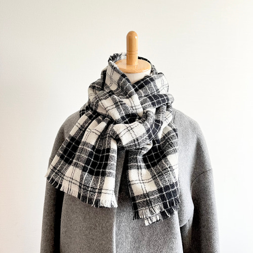 | メーカー | チェック柄マフラー ホワイト/ブラック 未使用 |