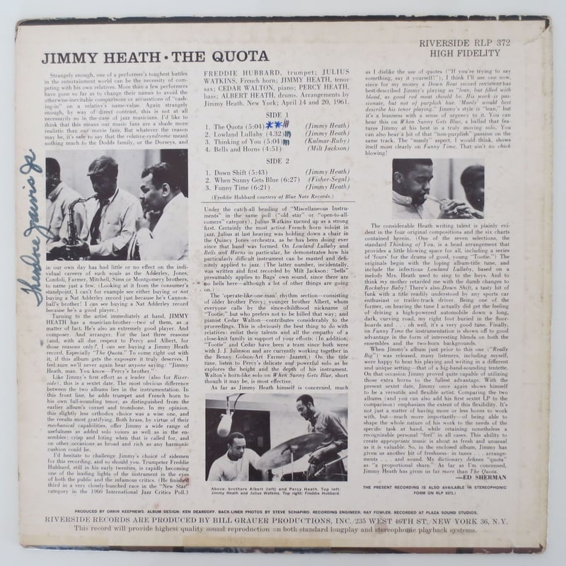 | メーカー | ジャズレコード ジミー・ヒース/ザ・クォーター ジャズレコード |