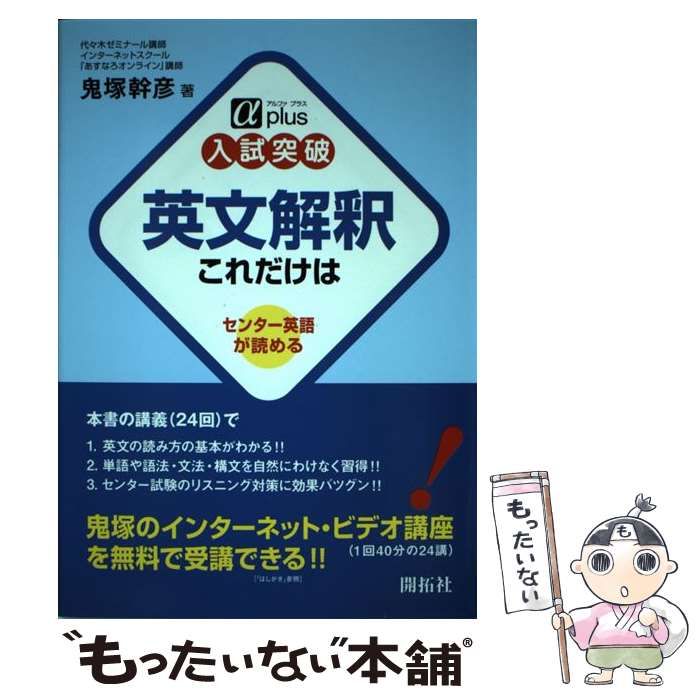 | 商品の特徴 | 入試突破英文解釈これだけは センター英語が読める (アルファプラス。開拓社 入試突破 英文解釈これだけは センター英語が読める 2007 鬼塚。英文解釈 これだけは Amazon | 入試突破英文解釈これだけは センター。入試突破のための英文解釈に特化した参考書。10年以上前大学受験の際に使用した参考書です。ざっと見た感じ書き込みはありませんが、見落としはあるかもしれません。初版です。#大学受験参考書 #本 #鬼塚幹彦。英文解釈これだけは センター英語が読める」 代ゼミ講師鬼塚 幹彦。- タイトル: 英文解釈 これだけは- 著者: 鬼塚幹彦- 出版社: 開拓社- 出版年: 2007年5月- ISBN: 978-4-7589-1521-2ご覧いただきありがとうございます。トートラ 人体の構造と機能。東京大学 文科・後期日程 1996年。レベル的には英文読解入門向けですね。2025 一級建築士 当年度課題集 Part1。第110回薬剤師国家試験。いずれにせよ素人保管なので読めればいい人向けです。ena 小6都立中 後期日曜特訓 小石川中コース【小石川中対策に!】。絶版 貴重品 旺文社 数学I+A 数学II+B セット。⚠️即購入歓迎ですが、その前にプロフィールもご一読下さい。1級建築士問題集 総合資格学院 | ||