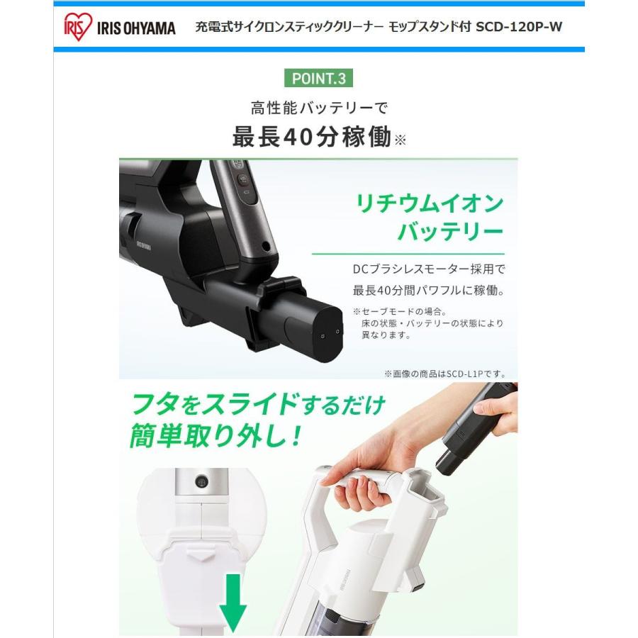 - 生活家電 > 掃除機・クリーナー > ②アイリスオーヤマ 充電式サイクロンスティッククリーナー SCD-120P-W IRIS OHYAMA(アイリスオーヤマ) サイクロンスティッククリーナー SCD
