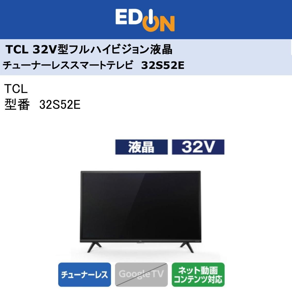 - テレビ・映像機器 > テレビ > 都内23区送料無料❗️ TCL 32S52E チューナーレステレビ 2022年製✨ 都内23区送料無料❗️ TCL 32S52E チューナーレステレビ 2022年製