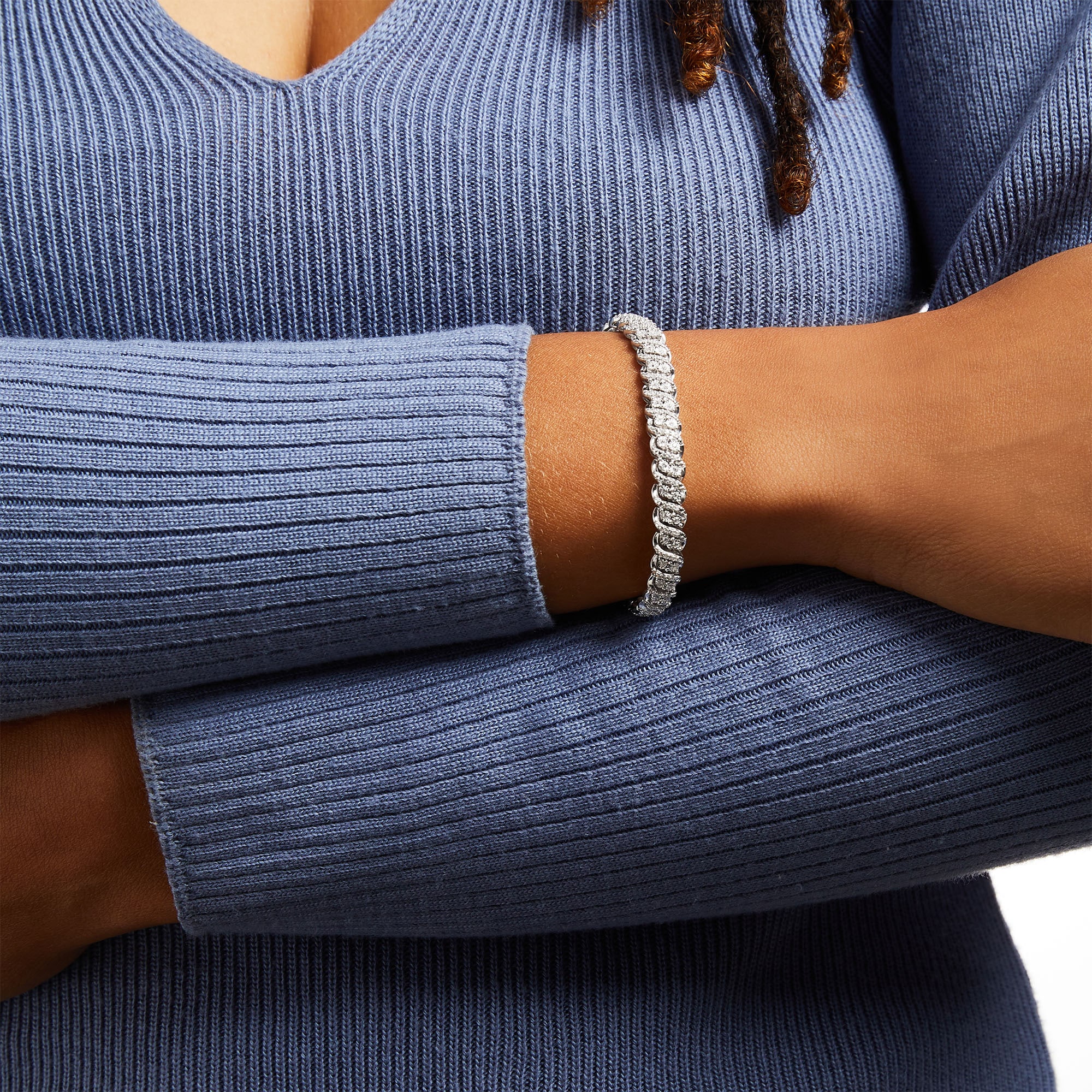 - メンズ > アクセサリー > Silva925 ブレスレット 1 CT. T.W. Diamond Double Row Alternating Swirl Line Bracelet in
