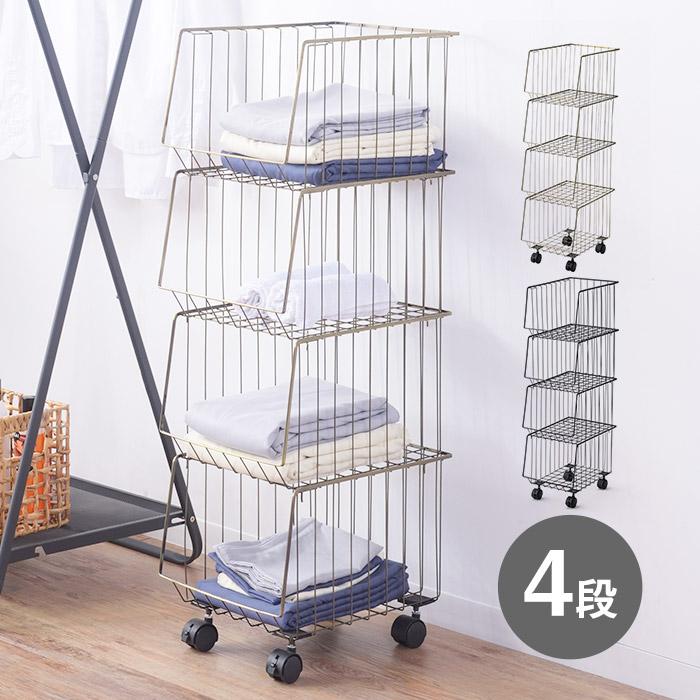 - 棚・ラック・シェルフ > スチールラック・メタルラック > ワイヤーラック 4段 キャスター付き 3台セット バスケット ラック スチールワイヤーバスケットワゴン4段 キャスター付き スタッキング