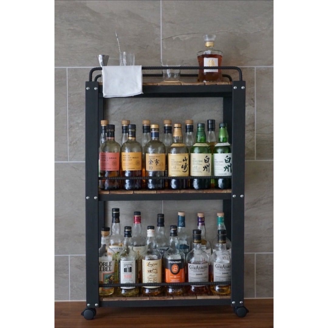 | 商品の特徴 | ウイスキーラック サイドバーワゴンタイプ 男前インテリア 1010。ウィスキーラック ワゴンタイプ 男前インテリア 棚 インダストリアル。ウイスキーラック サイドバーワゴンタイプ 男前インテリア 1010。洗練されたデザインのウィスキーラックワゴン(完成品)キャスター取付できます。キャスターは別梱包で付けてます。サイドバーは標準装備にしました!写真の通りボトル2列並べられます。機能性とスタイルを兼ね備えた、国産檜(ヒノキ)を使用した“男前インダストリアルデザイン”の棚。男前な収納とインテリアの融合をテーマとし、機能面も考え制作致しました。お酒の銘柄がしっかり見えるように落下防止の鉄筋を調整しております。サイズは縦97.4cm、奥行き23cm、横幅60cmお気に入りのウィスキーや雑貨を魅力的に展示するのに最適なサイズ感です。【多彩な使用シーンとインテリアとの調和】ブラック系の色合いと、独自の風合いを持つバーナー加工された木材は、リビング、書斎、寝室、オフィスなど、さまざまな空間に自然に溶け込みます。モダン、カジュアル、インダストリアル、ナチュラル、シンプル、和モダンなど、どんなインテリアスタイルにもマッチし、お部屋を洗練された空間に変えてくれます。多肉植物用の棚としても、ご利用いただいてます。【贈り物としての最適性】男前でスタイリッシュなこのシェルフは、受け取る人を驚かせ、そして喜ばせるこまなしです!一人暮らしやコンパクトな空間で使用するのに最適です。このシェルフで皆様のウィスキーライフが楽しくなることを願ってます。ご質問やご相談があれば、お気軽にお声がけください。●サイズ●縦97.4cm、奥行き23cm【柱含む】、横幅60cm(横に並べた時)棚と棚の間隔37cm●使用素材●宮崎県 檜【ご購入前に】・ヒノキを使用しています。アレルギーをお持ちの場合はご注意ください。・当商品は耐水性はございませんので、水回りでの使用はお控えください。・発送はご注文から1週間を目安にしております。・掲載写真は展示品のため、実際お手元に届く物と木目が異なりますことをご理解ご了承くださいませ。・想像と違っているなど、個人的な理由での返品返金は不可となります。ビスは金色になることもあります。・到着後、作品に問題があった場合は3日以内にご連絡ください。何かご相談やご質問がありましたら、どうぞお気軽にお問い合わせください。。自宅にバースペースを作る」20本以上のボトルコレクター向け、趣味を。■送料込■無印良品 スタッキングシェルフ 5×2 木製家具棚MUJIオーク材収納。北欧ヴィンテージ家具 デンマーク ドレッシングチェスト。【送料込】浜本工芸 HAMAMOTO 5段本棚 ブックシェルフ 360書棚A。【訳あり良品】MUJI無印 スタッキングシェルフ3×2/ウォルナット材/ラック棚。古美術柳 唐物 唐木 螺鈿違い茶棚 煎茶棚 器局。USED 屋久杉 飾り棚 キャビネット 置床 大川家具 ジャパニーズモダン 希少。フランスアンティーク フラワースタンド。無印良品 壁に付けられる家具 箱 3マス ホワイト 2個 美品 シェルフ。オールド カリモク karimoku 木製 収納棚 マガジンラック 電話台。木製ラック 12段 引き出し付き カルテ棚 収納 アンティーク ビンテージ。【新品】おしゃれ マントルピース アンティーク風。(cyata)テレビ台 テレビボード LOWYA 日本製。【最終値下‼️】アンティーク キャビネット。無印良品 パイン材ユニットシェルフ 大 幅86cm 高さ175.5cm 未組立。ウィスキーラック 男前インテリア 棚 インダストリアル 収納 お酒 多肉 129。C 飾り棚 アガチス材 コレクションラック ( 蕎麦猪口 茶碗 骨董品 等に)。マザーガーデン 棚 平成レトロ 廃盤品。古く味のある木製の収納棚 食器棚 本棚 収納棚 古家具。アンティーク家具 壁掛けワインラック グラスハンガー。IKEA BESTA ベストー シェルフ ホワイト。CDラック 木製キャビネット 16仕切り キャスター付き | ||