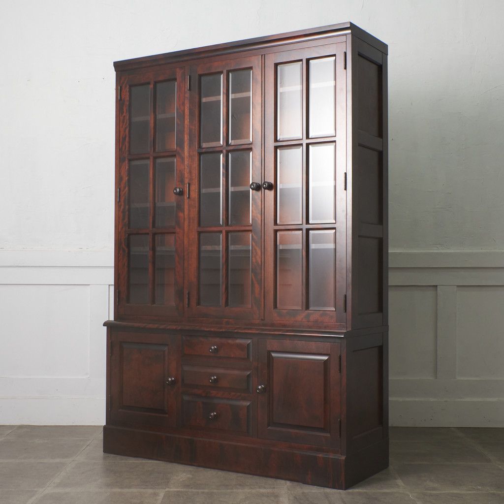 - 棚・ラック・シェルフ > 本棚・本収納 > DDC21 北海道民芸家具 ブックキャビネット 本棚 書棚 カバ/樺 無垢材 北海道民芸家具 本箱 #118 書棚 3面扉 本棚 カップボード 飾り棚 食器