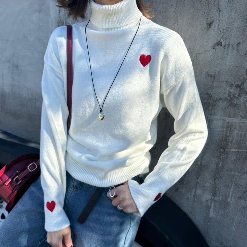 - レディース > トップス > HONEY MEW ハニーミュウハートカットタートルニット ホワイト ハート柄タートルニット(ホワイト) | COPINE HONEY MEW ハートカット