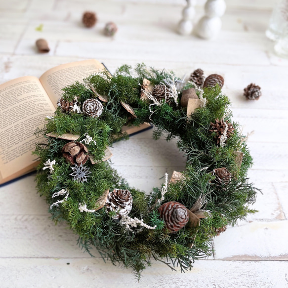 - 季節・年中行事 > クリスマス > Merry Christmas 2025 静かな森の木の実のリース 〜50cm 森の木の実のクリスマスリース*プリザーブドフラワー 25センチ リース