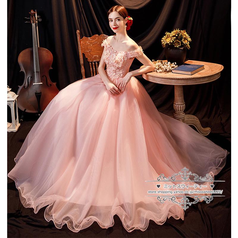 - レディース > スーツ・フォーマル・ドレス > アクカ シアーショルダードレス ワンピース 発表会 表彰 セレブ 高級 美ライン カラードレス 演奏会用ドレス Aライン ピンク オフショルダー フラワー