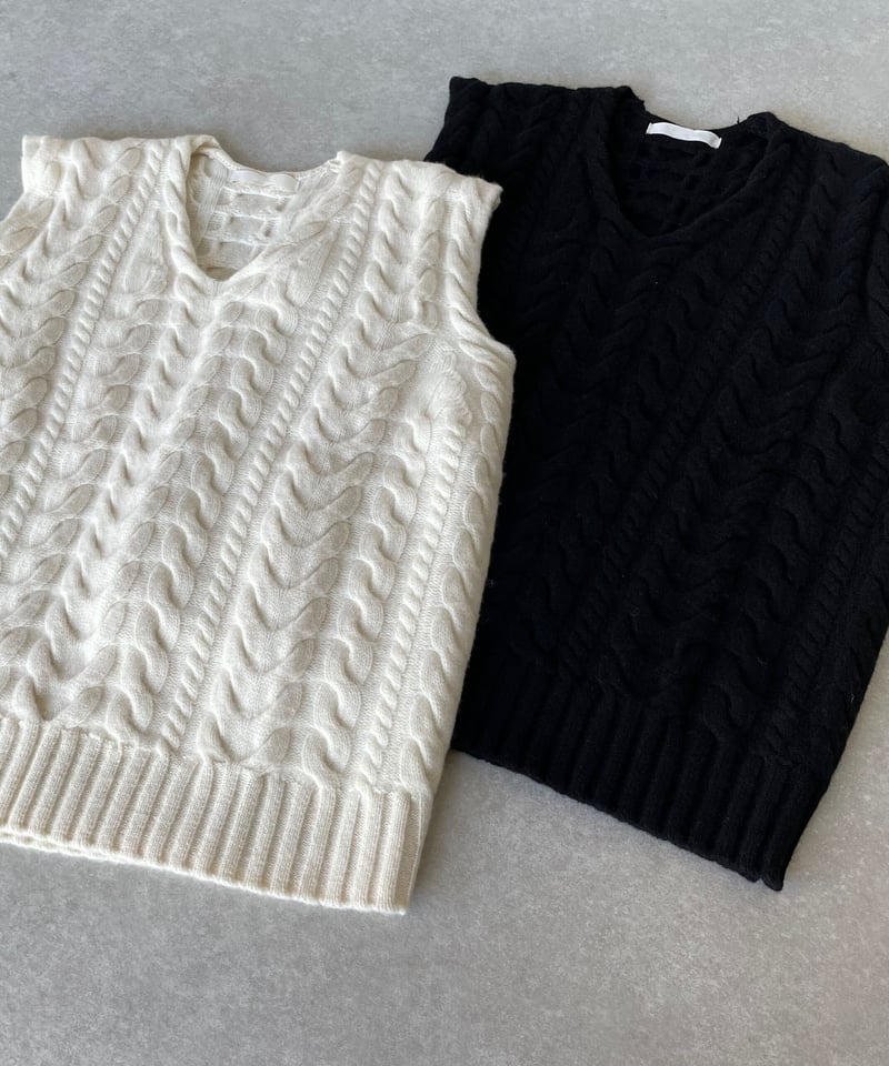 OHGA KNIT VEST ホワイト白 オーガ ニットベスト ケーブルニット OHGA KNIT VEST ホワイト白 オーガ ニットベスト ケーブルニット OHGA