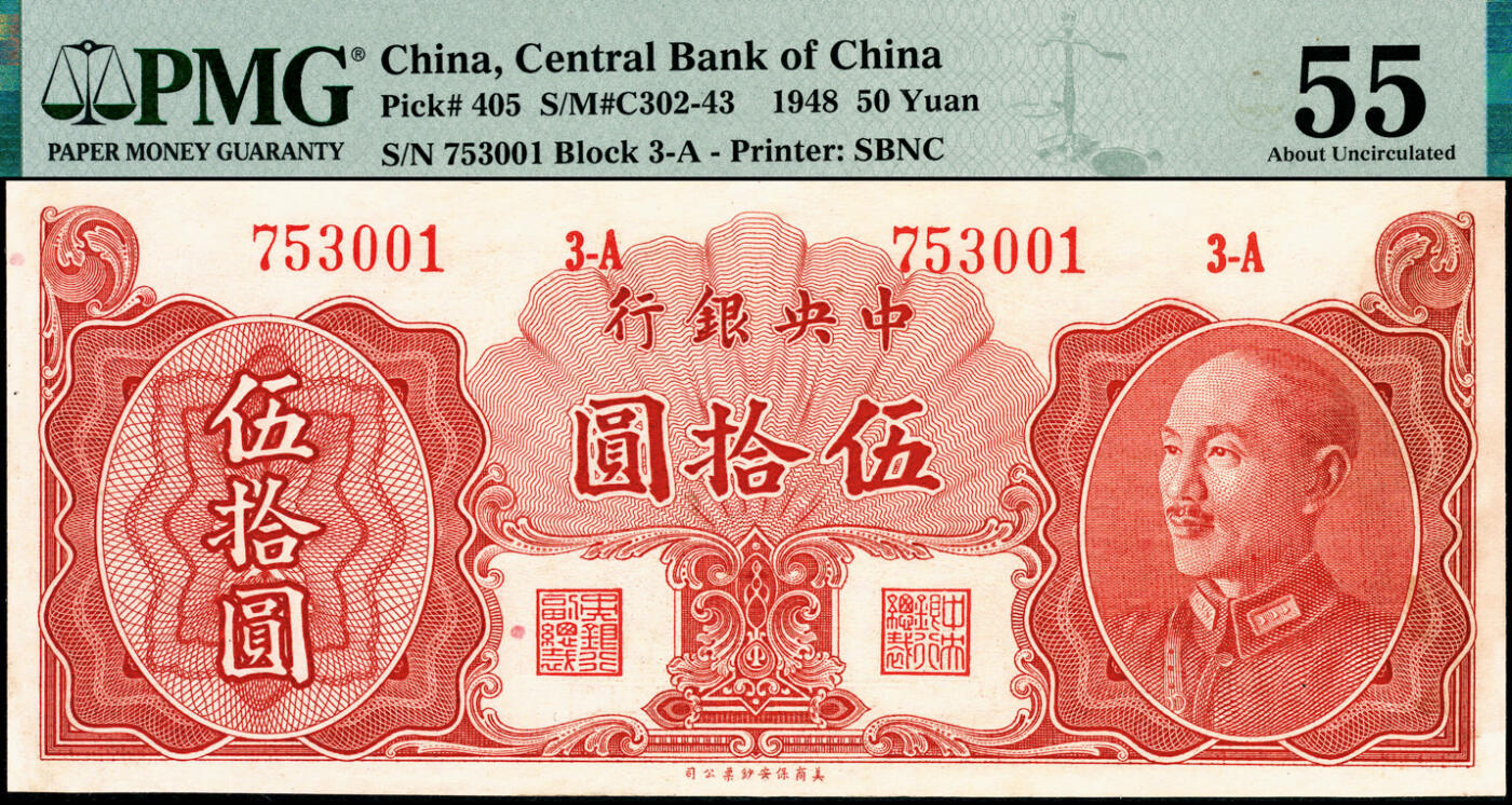 | 商品の特徴 | 1948年中央银行金圆券保安版伍拾圆,俞鸿钧·梁平签名,有号码与职章之。National Chiang Kai-shek Memorial Hall-蒋介石総統と中華民国。中華民国 Republic of China (51CN21) 貨幣博物館カレンシア Currencia.net。いらっしゃいませ。。 | ||